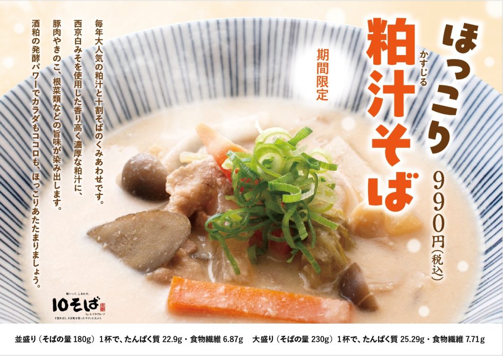 11月29日(土)より、「粕汁(かすじる)そば」を期間限定で提供いたします。