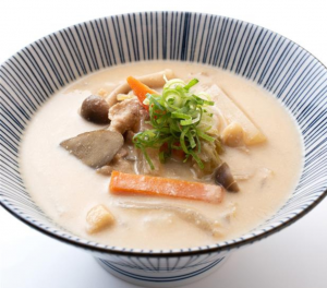 西京白みそを使用した香り高く濃厚な粕汁に、豚肉やきのこ、根菜類などの旨味が染み出します。